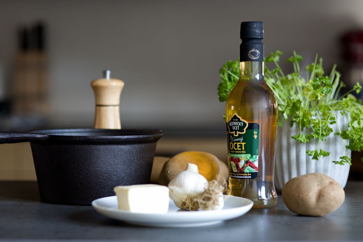 Zakápneme octem a necháme „vyvařit“. Průběžně stále mícháme zhruba 2-3 minuty.
