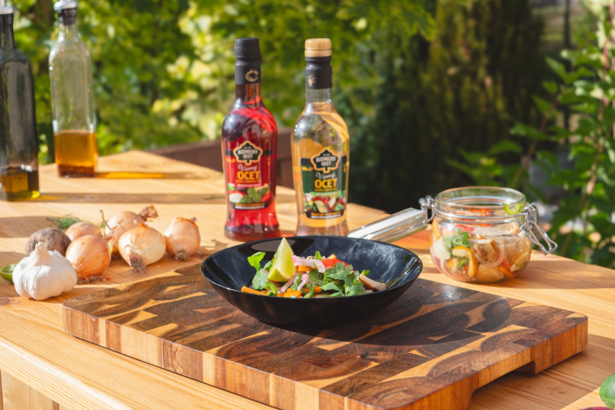 TIP: Proč právě Bzenecký bílý vinný ocet? Tento 6% ocet z bílého vína je lehký a má jemnou kyselinku. Pro svěží recept je perfektní, protože nepřebije chuť limetky a koriandru, ale naopak ji sofistikovaně doplní.